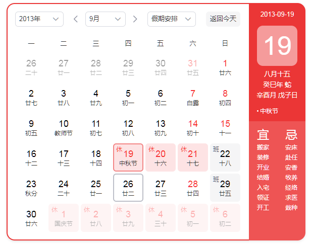 9月19日至21日放假調(diào)休,共3天。9月22日(星期日)上班。